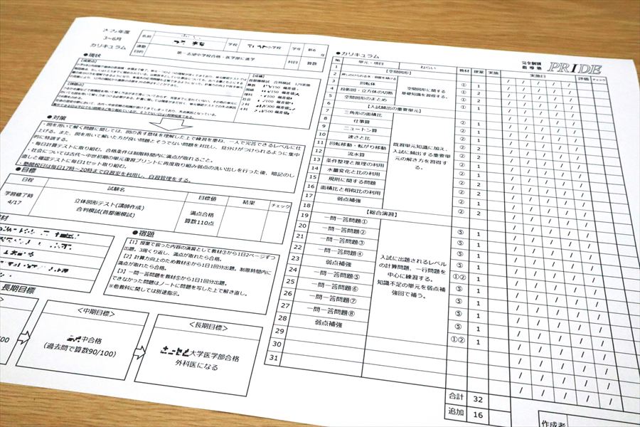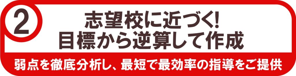 生徒一人ひとりの現状を丁寧に分析し、「目標」に向けて最短ルートで成果につながるよう作成します。