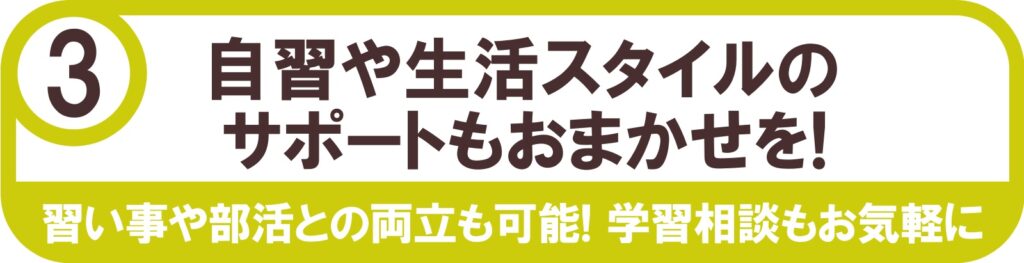 最終的には、自分で必要な勉強を見極め、計画・実行できるように、自立した学習習慣を身につけていきます。
