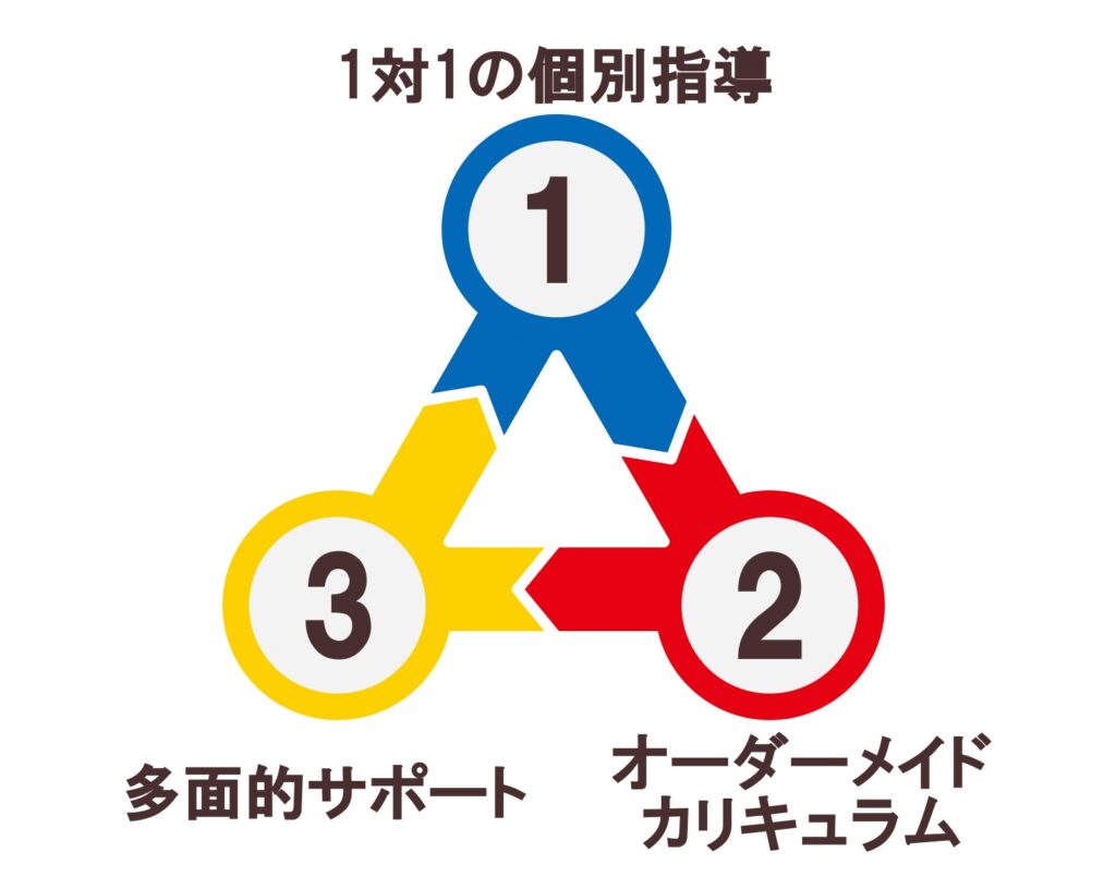 生徒一人ひとりが「本当に達成したい!」と思える目標を明確にし、達成までのステップを細かく分解してオーダーメイドカリキュラムを作成します。