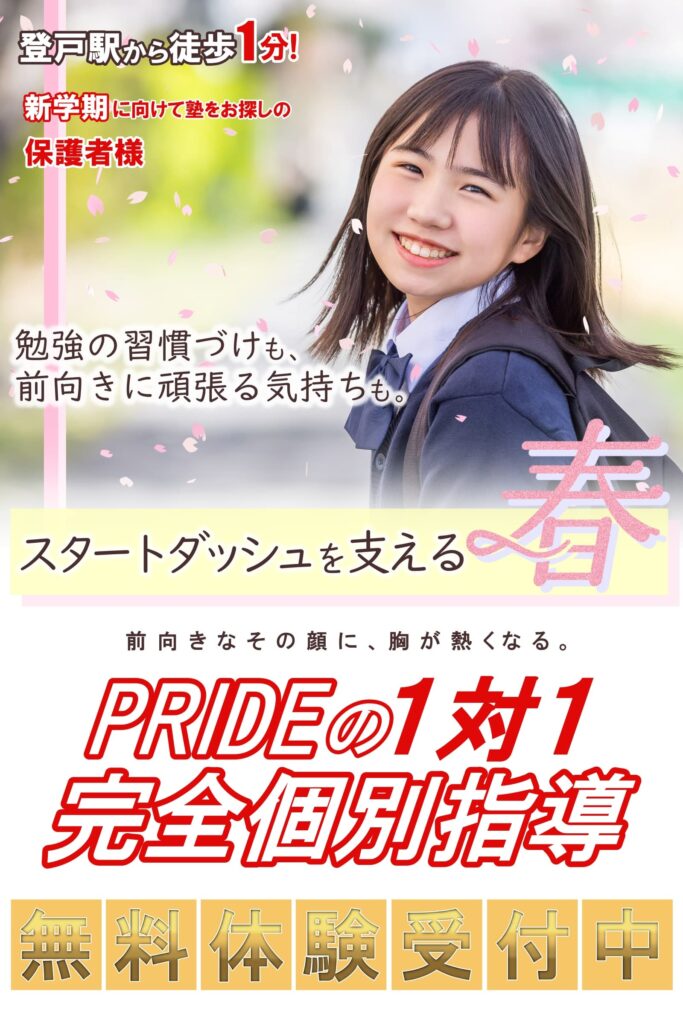 前の塾では成績も悪く、「受験なんてできないので諦めてください」と先生に言われました。でも諦めたくなくてPRIDEに転塾しました。PRIDEの先生は僕のことを信じて指導してくれ、僕も先生の指導を素直に聞いて実行しようということを意識して勉強しました。